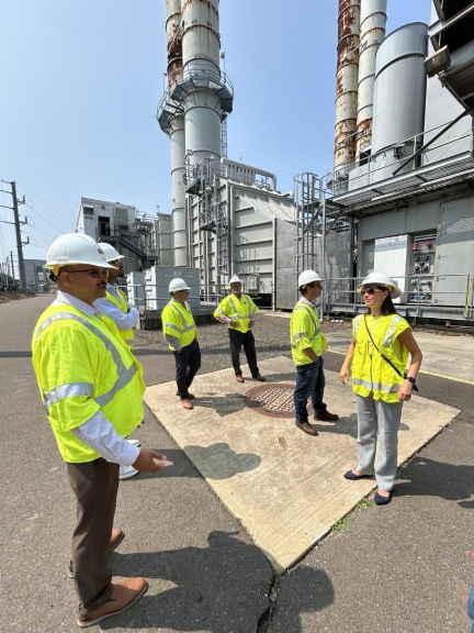 The GenConn Devon power station is a Milford-based peaking plant that is a 50/50 joint venture between Clearway Energy, Inc. and UI. The power plant was developed in accordance with a law passed by the State of Connecticut’s General Assembly in 2007 (Public Act 07-242, Section 50), which sought a long-term solution to meet peaking needs. The facility only operates during times of high electricity usage, when there is a capacity shortage, or too little available electricity supply relative to demand. Several members of the Department of Energy & Environmental Protection (DEEP) attended a tour of GenConn on August 7.